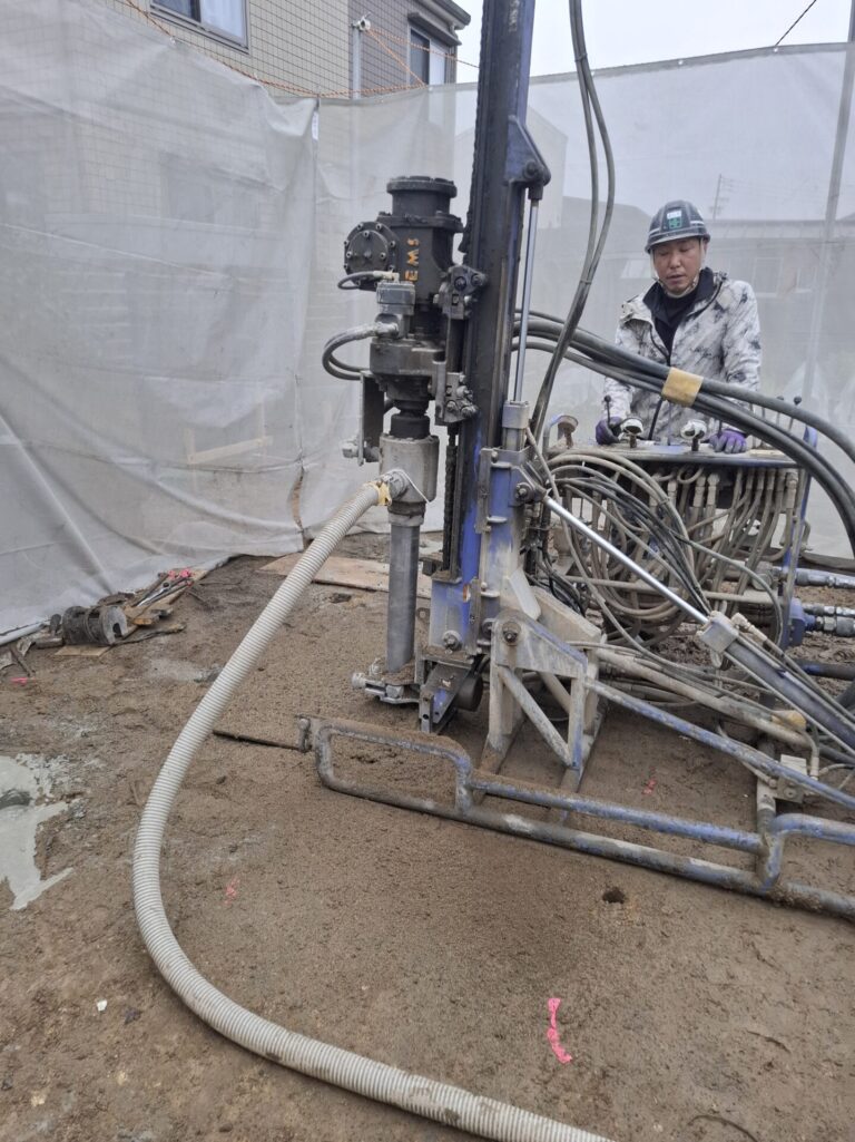 個人宅の地盤改良を実施しました。小口径Φ90mmのボーリングによる地盤改良です。 -